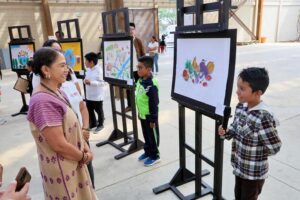 *La Presidenta Honoraria, Irma Bolaños Quijano, llevó a cabo la premiación del Primer Concurso de Pintura Infantil de este programa alimentario Oaxaca de Juárez, Oax. 1 de octubre de 2025.- Coloridas mesas con frutas y…