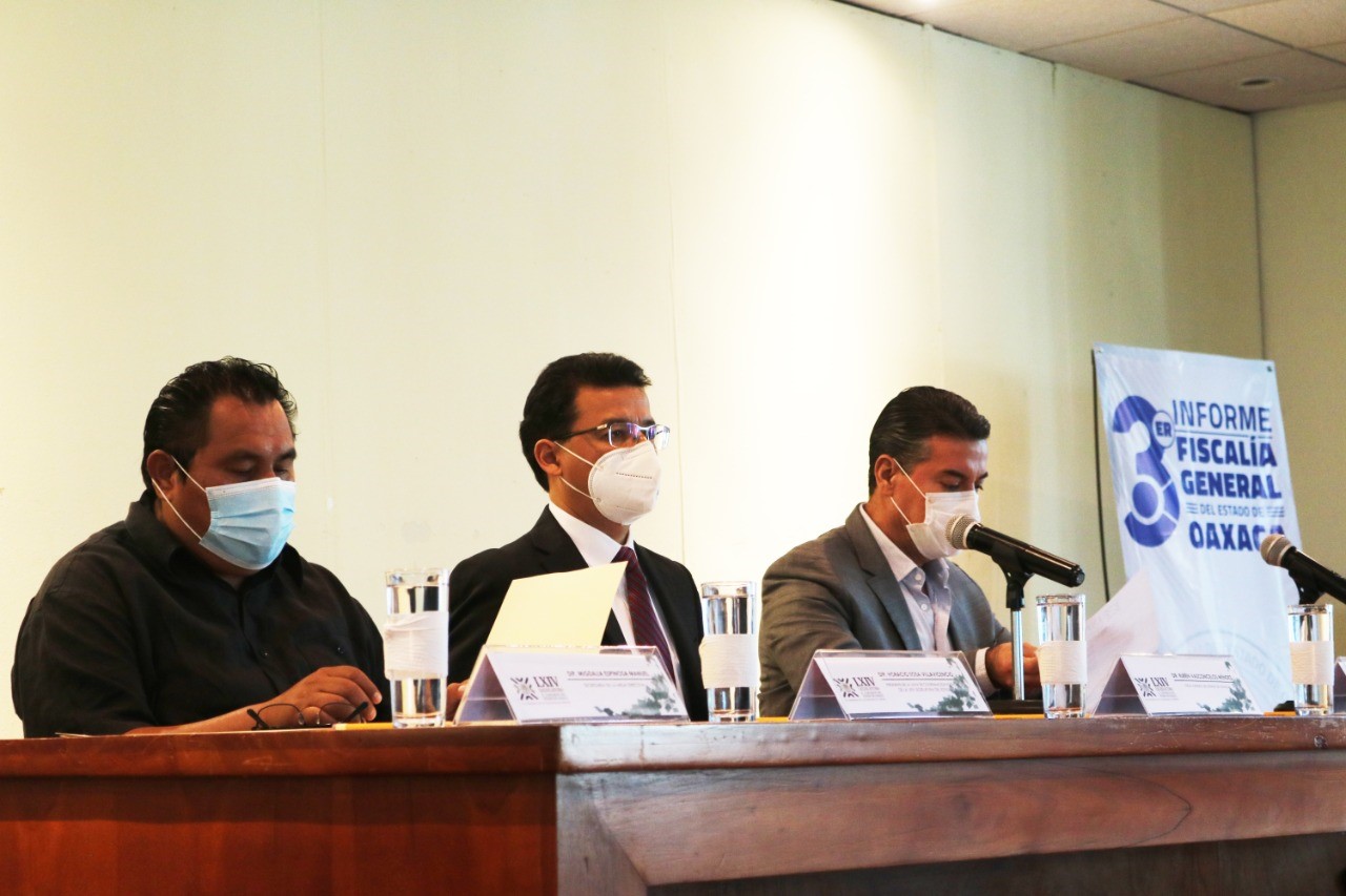 Por su parte el Fiscal Rubén Vasconcelos Méndez presentó su renuncia –mediante una carta- al Congreso del Estado y afirmó que dejó una institución fortalecida en el combate a la delincuencia y agradeció el apoyo brindado por el gobernador Alejandro Murat en quien reconoció un gran liderazgo en el combate a la delincuencia y a la impartición de la justicia.