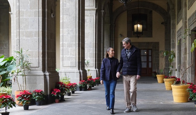 Frente al Árbol de Navidad de Palacio Nacional y en compañía de su esposo, Jesús María Tarriba, la primera Presidenta de México recordó que lo más trascendente en estas fechas es el amor a la familia, a los hijos, a las madres y a los adultos mayores.