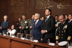 En su conferencia de prensa mañanera en Palacio Nacional, indicó que, desde luego, en la formalidad, desde el porfiriato, se hablaba de la división, del equilibrio entre los poderes, pero en realidad el poder de los poderes era el Ejecutivo. ¿Cuándo se había visto que se quedara sentado el presidente de la Corte en un acto así? Eso me llena de orgullo porque significa que estamos llevando a cabo cambios, es una transformación, ya no es el presidente el que le da órdenes a ministros, y también es un desmentido cuando de manera exagerada se habla de una dictadura, de una tiranía.