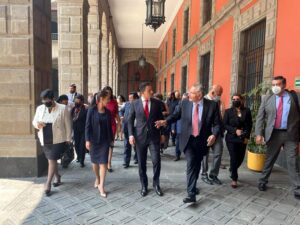 Los gobernadores morenistas se dirigieron más tarde al antiguo Palacio del Ayuntamiento de la ciudad de México donde departieron con la jefa de Gobierno, Claudia Sheinbaum Pardo.