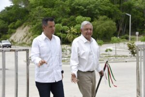 Santa María Huatulco, Oax. 17 de junio de 2022.-El presidente Andrés Manuel López Obrador, presentó junto al gobernador, Alejandro Murat Hinojosa, el “Plan de apoyo a personas afectadas por el huracán Ágatha”, y la reconstrucción de los 38 municipios afectados y declarados zonas de desastre por un monto de 6 mil 513 millones de pesos.