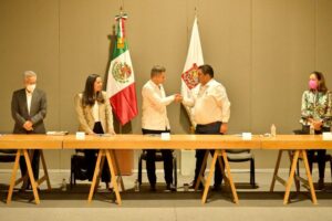 Tlalixtac de Cabrera, Oax. 22 de abril de 2022.- La Secretaria de Administración, Mariana Nassar Piñeiro y el líder del Sindicato de Trabajadores de los Poderes del Estado e Instituciones Descentralizadas de Carácter Estatal de Oaxaca (STPEIDCEO), Pedro Castillejos Villalbos acordaron un incremento salarial del 8% ( 4.5% directo al salario y 3.5% para previsión social múltiple) en beneficio de más de 12 mil servidoras y servidores públicos y sus familias.