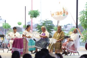 Uno de los momentos más significativos fue la participación musical de las mujeres de Santa María Tlahuitoltepec, quienes compartieron su experiencia con la música como forma de libertad y vida cotidiana.