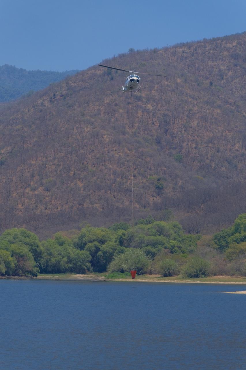 Este helicóptero proporcionado por la administración del Gobernador Salomón Jara, tiene un contenedor con capacidad para trasladar mil 200 litros de agua, además de otro equipo empleado para la extinción de incendios.