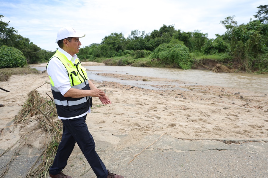 En Santo Domingo Armenta, el Gobernador Salomón Jara Cruz recorrió la agencia de policía Callejón de Rómulo, perteneciente a este municipio, que fue la más afectada con las lluvias provocadas por el huracán “John”, siendo recibido por el agente Miguel Ángel Dávila Hernández quien le presentó un reporte de los daños ocasionados por el meteoro.