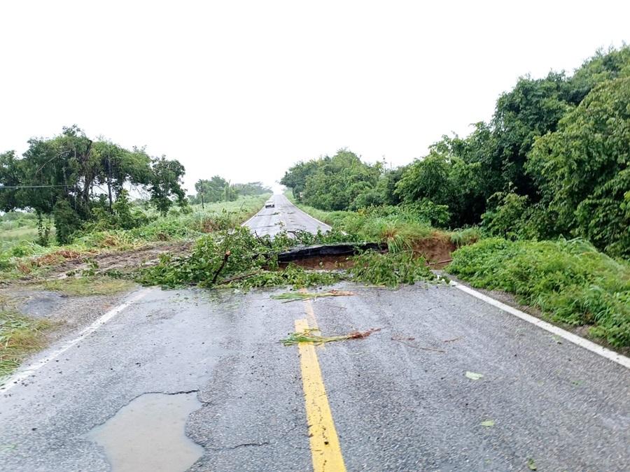 Y en la carretera federal 200, en límites de Oaxaca y Guerrero, en el kilómetro 212+700, tramo Cuajinicuilapa-Pinotepa, a la altura de la desviación a Santa María Cortijo, se registró un desbordamiento de la corona de la cinta asfáltica en sus dos direcciones, por lo que se cerró la circulación de esta vía en su totalidad, misma que es acordonada por la Guardia Nacional (GN), Estación Pinotepa Nacional, para evitar accidentes.