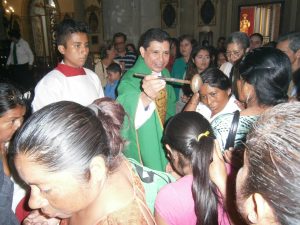 El sacerdote ofició la tradicional misa dominical del medio día, sustituyendo al Arzobispo, Pedro Vásquez Villalobos, desde el altar principal del templo de la Catedral, se refirió a lo que actualmente sucede en Nicaragua, donde la iglesia está siendo atacada por el ejército.