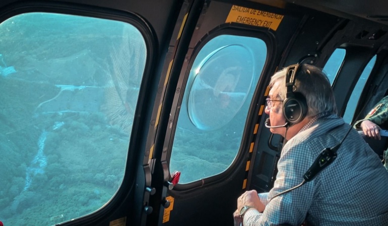 El presidente Andrés Manuel López Obrador realizó un sobrevuelo para supervisar la supercarretera de Oaxaca a Puerto Escondido.