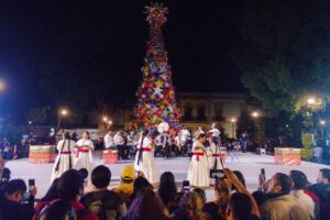 Previo al encendido de este árbol monumental de Navidad, las familias oaxaqueñas, así como las y los visitantes nacionales y extranjeros que se dieron cita en este lugar, pudieron disfrutar del Concierto Navideño que ofreció la Banda de Música del Estado de Oaxaca, bajo la batuta del maestro César Amora Aguilar, y que contó con la participación especial de la soprano María Rojas.