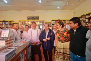 Resaltó que con la llegada de este nuevo gobierno se rompe la deficiencia de materiales para que lleguen a todas y todos. “Se recuperó la librería de este emblemático recinto -espacio que lleva el nombre de uno de los hombres más transcendentes de los oaxaqueños `Ricardo Flores Magón- como un lugar impulsor, que sea un centro de presentación al que visiten autores, se colabore con la Feria del Libro y se multipliquen los círculos de lectura con la participación de la población”.
