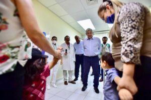 Durante su gira estuvo acompañado del gobernador Rubén Rocha –“no quisiéramos que se fuera nunca”-, y el gabinete de Salud encabezado por Jorge Alcocer y Zoé Robledo, director del IMSS.