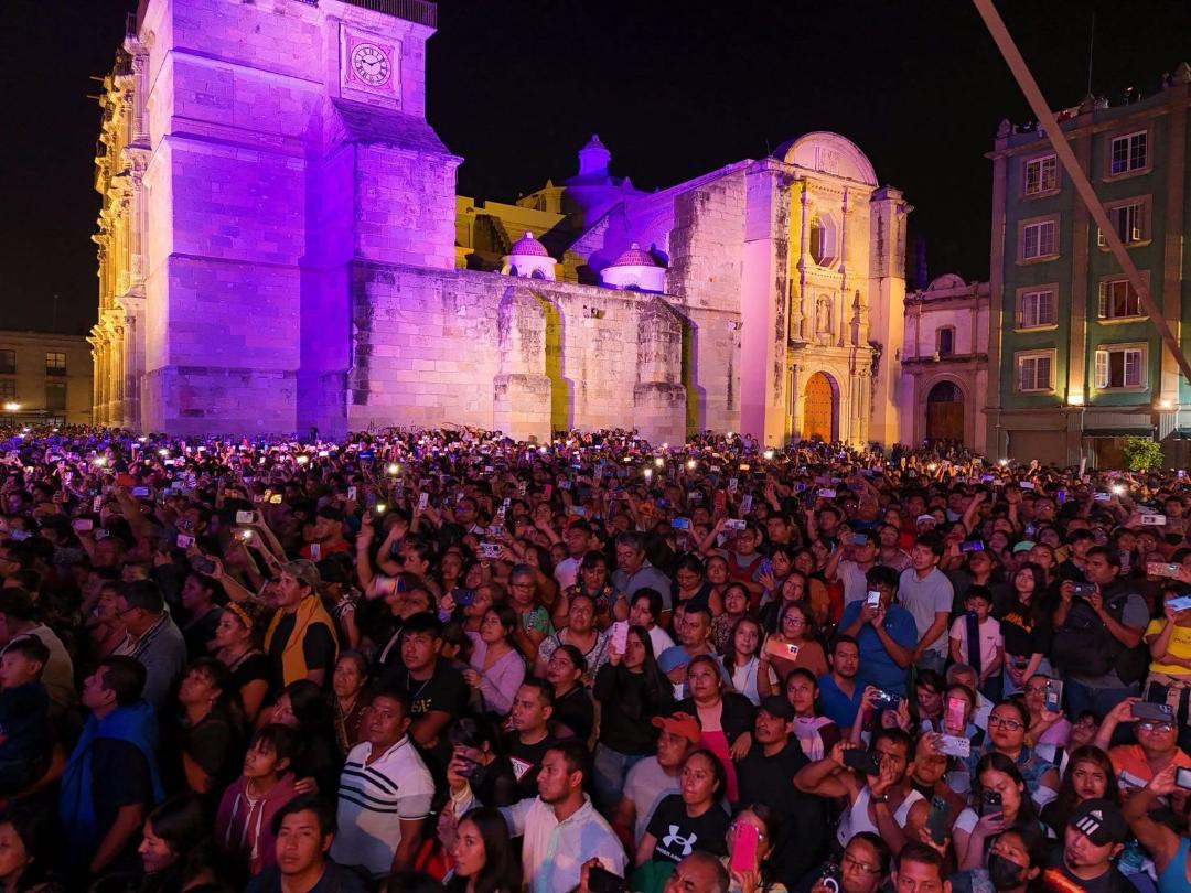 Oaxaca de Juárez, Oax. 25 de abril de 2025.- Una auténtica fiesta se vivió la noche de este viernes en la Alameda de León, donde más de 25 mil personas bailaron, cantaron y corearon al ritmo de Los Ángeles Azules, quienes ofrecieron un concierto inolvidable en la Verde Antequera de la capital oaxaqueña.La legendaria agrupación de cumbia originaria de Iztapalapa, Ciudad de México encendió el escenario con temas como “Las Maravillas de la Vida”, “20 Rosas” y su icónico “17 Años”, desatando la euforia del público que abarrotó el Centro Histórico desde temprana hora.