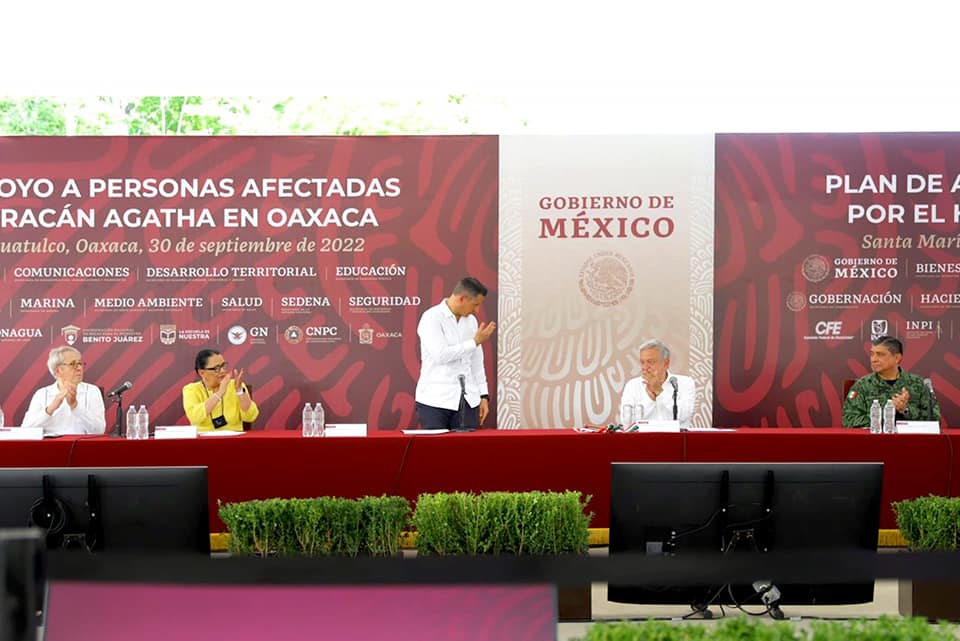 En Huatulco, a los damnificados de Agatha, el presidente Andrés Manuel López Obrador explicó que no se han entregado los enseres por dificultades en la producción y distribución a nivel mundial, a consecuencia de la guerra entre Rusia y Ucrania que dificulta los suministros, pero ofreció regresar en tres meses: