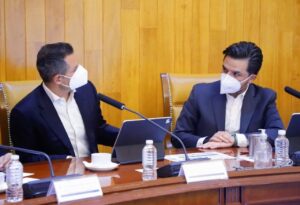 Ciudad de México. 21 de junio de 2022.– El gobernador Alejandro Murat Hinojosa se reunió con el director general del Instituto Mexicano del Seguro Social, Zoé Robledo, con el objetivo de acelerar los trabajos para ampliar el Programa IMSS-Bienestar en Oaxaca, como se planteó el viernes pasado durante la reunión de trabajo que se llevó a cabo en Santa María Huatulco para informar sobre el plan de apoyo a las personas afectadas por el huracán “Ágatha”.