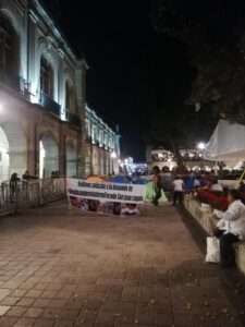 En tanto, frente a Palacio de Gobierno desplazados de San Juan Copala mantienen un plantón indefinido exigiendo justicia.