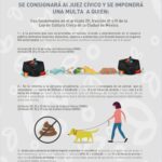 2.- Se le informa a la persona prioritaria, poseedora o encargada de un animal que se sancionará con multa de $985.82 a $3,584.80 o con 13 a 24 horas de arresto o bien con 6 a 12 horas de trabajo en favor de la comunidad, que se abstenga a recoger las heces de su animal o abandonar dichos desechos fuera de los contenedores especialmente habilitados para ese efecto.