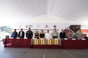 Acompañado del titular de la Defensoría de los Derechos Humanos del Pueblo de Oaxaca, José Bernardo Rodríguez Alamilla, el coordinador estatal de la Guardia Nacional, Jorge Adán Torres Márquez, en representación del General Brigadier Diplomado de Estado Mayor, Benedicto Santa María González, el secretario de Seguridad Ciudadana, Movilidad y Protección Civil, Raúl Ávila Ibarra, así como concejalas y concejales y funcionarios municipales, el edil capitalino hizo entrega de  estímulos económicos a los elementos de la corporación que brindan seguridad a la ciudadanía del municipio de Oaxaca de Juárez.