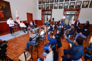El Gobernador de Oaxaca, Salomón Jara Cruz realizó la primera conferencia de prensa bajo la premisa de máxima transparencia y rendición de cuentas, estrategia de comunicación mediante la cual hará públicas todas las acciones de gobierno.
