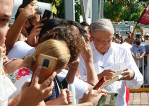 Y por no permitir la corrupción hay Programas de Bienestar y en el caso de Colima quiero aprovechar para anunciarles que, por la petición de la gobernadora que, como ustedes dicen, no está sola, Indira no está sola, les doy a conocer tres obras que van a ayudar: