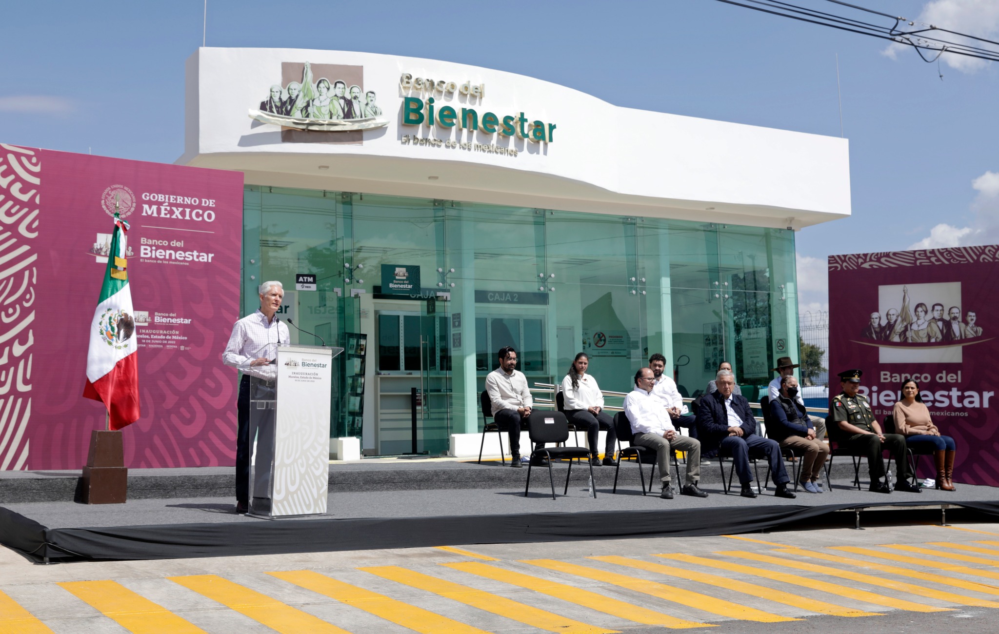 En San Pedro de los Baños, donde insuguró otra sucursal y recordó que en Acambay se le pasó agradecerle a don Alfonso Quintín Flores la donación del terreno para la institución, dijo que se ha hecho mucho durante su administración y la clave es: