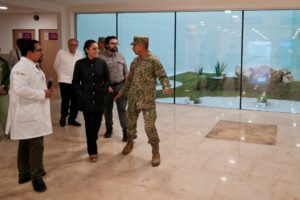 No solamente el Ejército, la Secretaría de la Defensa, nos cuida, la seguridad nacional, cuida al pueblo ahora con la Guardia Nacional también; no solamente está presente cuando hay inundaciones, temblores ―toquemos madera―, sino que, además, ahora nos ayuda en las grandes obras estratégicas del pueblo: ayudaron en el Tren Maya, ayudaron en el Aeropuerto Internacional “Felipe Ángeles” y construyen hospitales, escuelas.