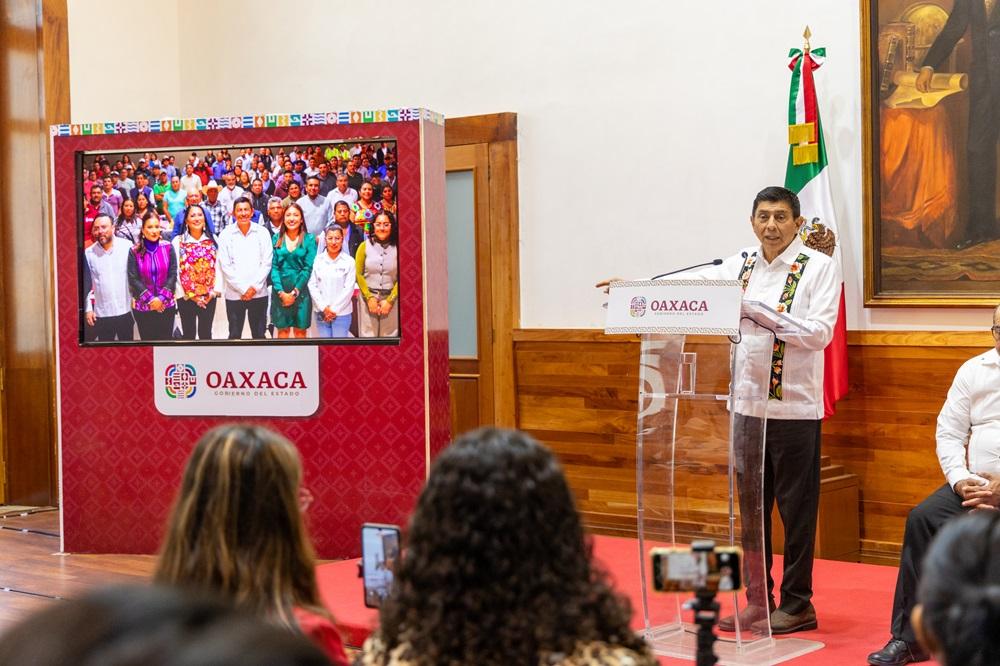 Jara Cruz informó sobre la creación de dos nuevos organismos: el Instituto Estatal de Lenguas Originarias, a cargo de Víctor Cata; y el Instituto para el Fomento de la Lectura y Alfabetización, con Carmen Sánchez Parada, y la creación de la Secretaría del Agua.