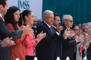 Por último, agradecer mucho al IMSS por la solidaridad, la fraternidad, el apoyo en el programa IMSS-Bienestar, a los representantes del sector empresarial y representantes del sector obrero, desde luego a los trabajadores.