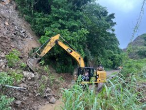 Se retiraron piedras, lodo y árboles por derrumbes y deslaves junto con Caminos Bienestar (Cabien) con maquinaria pesada como retroexcavadoras, volteos, payloaders, entre otras.