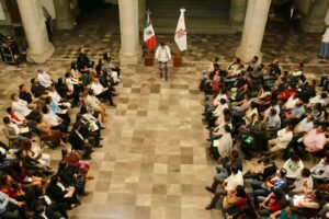 Acompañado de los integrantes de su gabinete legal y ampliado, Jara Cruz considero que el encuentro es el inicio de una nueva e inmejorable oportunidad para construir una mejor educación para Oaxaca y afirmó que en su gobierno se acabaron los privilegios, la corrupción promovida y tolerada desde el poder; y se impondrá la austeridad como eje del servicio público, además de combatir la desigualdad social y la impunidad.