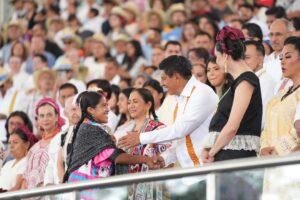 Acompañado de la Presidenta Honoraria del Sistema DIF Oaxaca, Irma Bolaños Quijano; el Gobernador Salomón Jara Cruz resaltó que las actividades de Julio, mes de la Guelaguetza 2025 se han vivido en paz y tranquilidad, en un ambiente de hermandad y convivencia, una característica de los pueblos originarios.